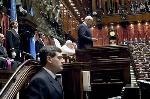Discorso del Presidente Pera davanti a sua Santita Giovanni Paolo II in occasione della visita al Parlamento
