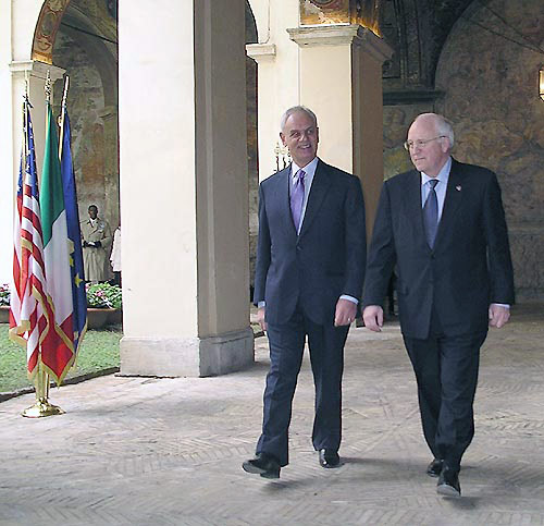 Pera con il Vice Presidente degli Stati Uniti, Dick Cheney, nel Chiostro del Complesso della Minerva