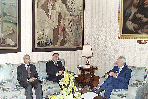 Il Presidente del Senato Marcello Pera con il Ministro degli Affari Esteri del Pakistan, Khurshid Mahmud Kasuri, ricevuto a Palazzo Madama