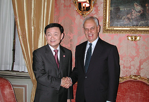Il Presidente del Senato, Marcello Pera, con il Primo Ministro del Regno di Thailandia, Thaksin Shinawatra, ricevuto a Palazzo Giustiniani.