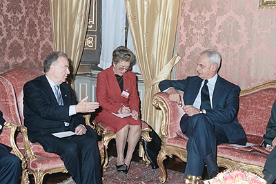 Il Presidente del Senato, Marcello Pera, con il Presidente della Repubblica del Portogallo, Jorge Fernando Branco de Sampaio, ricevuto a Palazzo Giustiniani.
